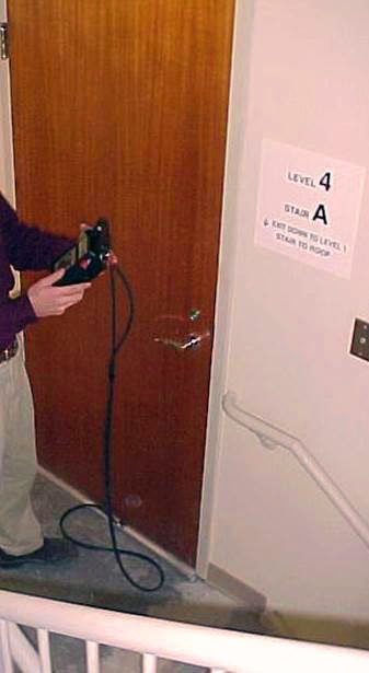 The problem is, as people are escaping the fire, they have to open the door to the stairway. When the door is open, smoke rushes in and prevents the stairway from being used by later escapees.